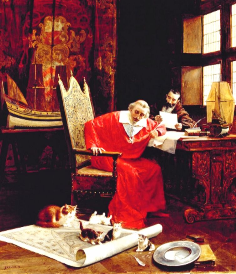 Любопытно, что, обладая жестким и холодным характером, Ришелье обожал кошек. Они были его настоящей отрадой. Зная об этом увлечении, ему привозили редкие породы из-заграницы. У кардинала было отличное чувство юмора, поэтому одного черного кота он назвал Люцифером. У него было 14 кошек, с которыми он играл, ненадолго откладывая дела.