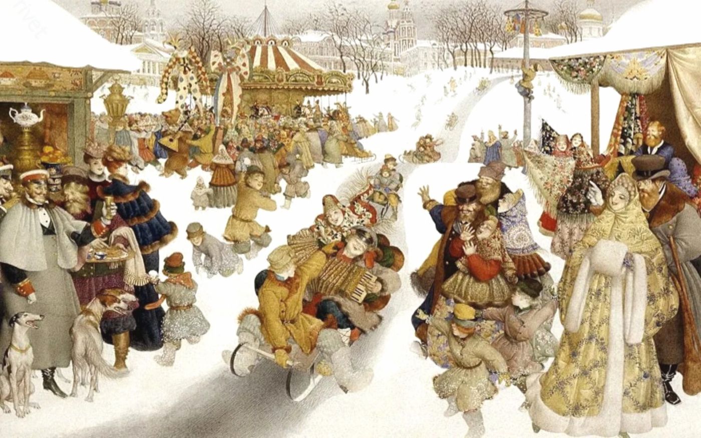 С принятием христианства основные традиции, конечно, никуда не ушли. Крестьяне упорно продолжали молиться в новых храмах и жечь чучела на праздник Ярилы. А еще рядились, чтобы запутать злую судьбу. Гуляния ряженых на Масленицу было в традициях и в крестьянской среде, и в боярской, и в княжеской. Под маской, «харей», как тогда ее называли, запросто мог в этот день вывалять в снегу простой холоп великую боярыню и даже княгиню — под чужой личиной не зазорно!