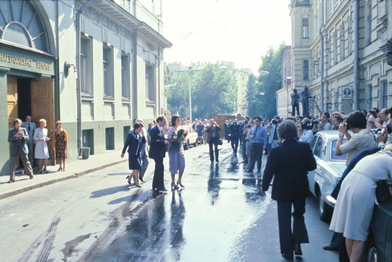 С утра у Грибоедовского дворца бракосочетаний толпились иностранные журналисты, однако внутрь их не пустили. Практически единственным фотографом, запечатлевшим свадьбу, был сотрудник агентства политических новостей Феликс Дунаевский.