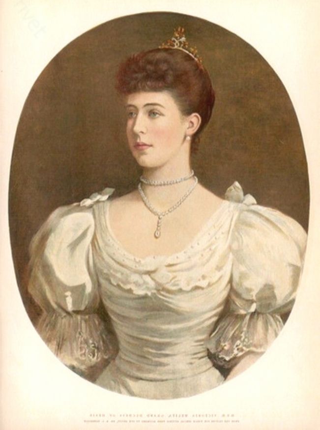 Викторию Мелиту Саксен-Кобург-Готскую в семье звали Вики, в честь бабушки – английской королевы, или Даки (уточка). Она унаследовала нежную красоту Романовых от своей матери, великой княгини Марии Александровны. Глубокие глаза, казалось, всегда грустные, полуулыбка, тонкий изящный стан и, конечно же, манеры настоящей англичанки (ведь девушка воспитывалась при дворе бабушки) — она была не так блестяще образована, как ее кузины Элла и Аликс, но и не столь горда и застенчива. В 1893 году ее отец, герцог Эдинбургский, унаследовал герцогство Саксен-Кобург-Готское, и Мелита могла по своему происхождению и состоянию рассчитывать на блестящую партию.