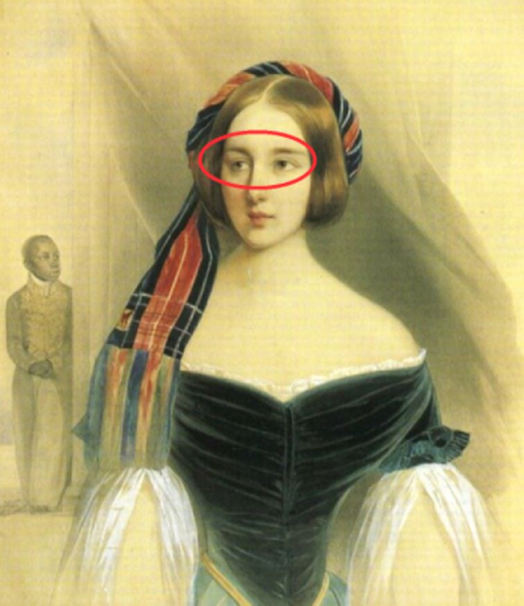Однако, например, художник Александр Брюллов нарисовал юную Наталью именно в анфас. На портрете в возрасте примерно двадцати лет от роду. Лишь слегка замаскировал кокетливым взглядом.