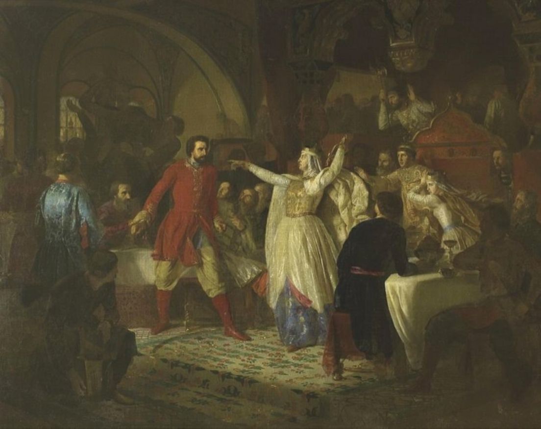 Этот инцидент достоин пера романиста или художника. В 1433 году на свадьбе сына с княжной Марией Ярославной (внучкой знаменитого соратника Дмитрия Донского – Владимира Храброго) Софья прилюдно оскорбила Василия Косого, сорвав с него золотой пояс, который – как она утверждала – раньше принадлежал Дмитрию Донскому.