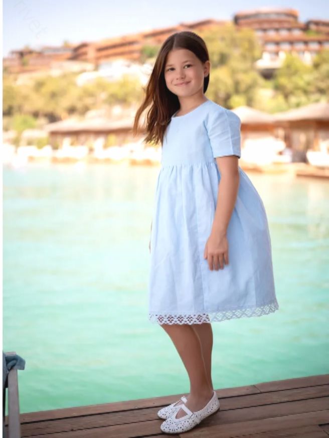 На снимках ко дню рождения Белла позировала в нежно-голубом платье с ажурными оборками и белых туфельках, распустив волосы. Выглядит очень нарядно и по-взрослому. Многие подписчики отмечают, что она похожа на папу.