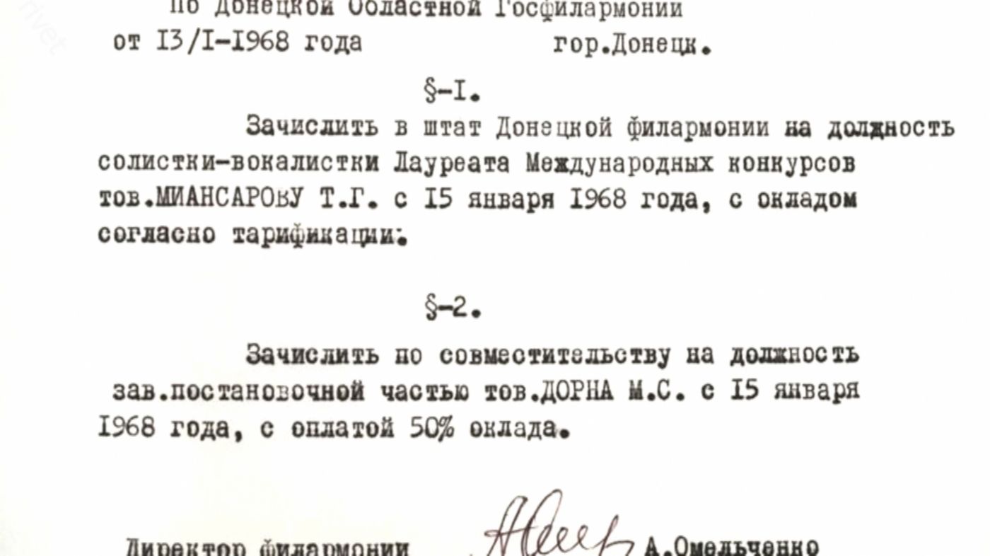 Угнетенная и сломленная, она перебралась в украинский Донецк, где удалось устроиться на скромную должность в местной филармонии. Вчерашняя звезда все еще рассчитывала в будущем на возвращение с повторным триумфом, однако перерыв затянулся на долгих 12 лет. Живя в УССР Миансарова в третий раз вышла замуж.