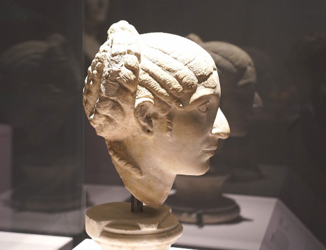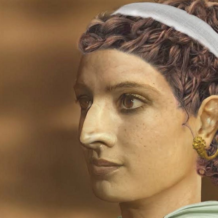Ученые и исследователи пытаются реконструировать облик Клеопатры на основании свидетельств и сохранившихся изображений, профилей на монетах и фресках. Вот эта реконструкция создана преимущественно на основании бюста из Берлинского музея, а также на монетах и бюсте из Британского музея. На нас смотрит очень привлекательная и интересная женщина.