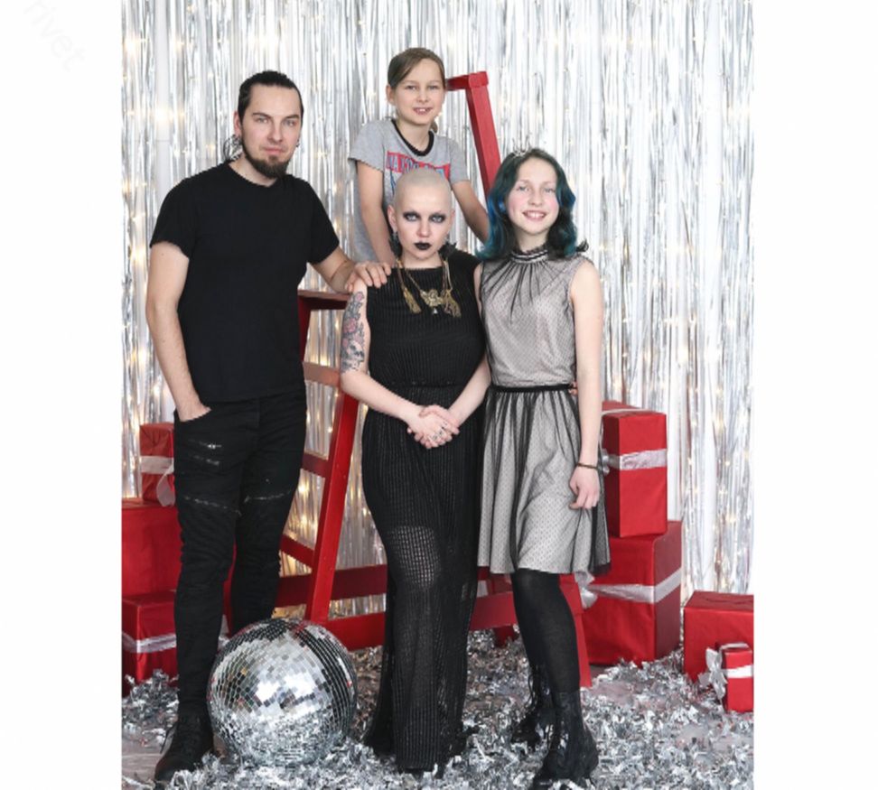 Детей супруги воспитывают так же, как когда-то воспитывали их самих — без давления, без запретов, с правом на собственный выбор. 17-летняя Лада и 14-летний Елисей могут экспериментировать с внешностью, выглядеть так, как им хочется, и никто в семье не скажет им, что это неправильно. При этом они обычные подростки: ходят в школу, общаются с друзьями, читают книги. Родители не стремились сделать их непохожими на других любой ценой. Просто дали им свободу быть собой.