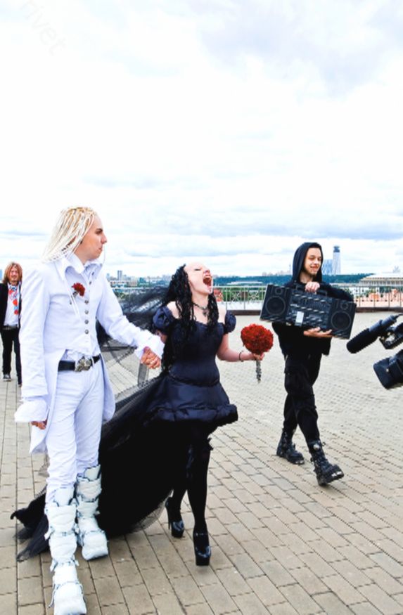Ира выбрала чёрное платье с корсетом и дерзкую полубритую причёску, а Саша надел белый костюм, заплёл белые дреды и выбрал очень необычную обувь. Кто-то смеялся, кто-то крутил пальцем у виска, кто-то откровенно жалел родителей невесты и жениха. Но были и те, кто желал им настоящего счастья. Фотографии разлетелись по интернету быстро. Над ними смеялись, им не верили, называли «фриками», но прошло 17 лет, а они по-прежнему вместе.