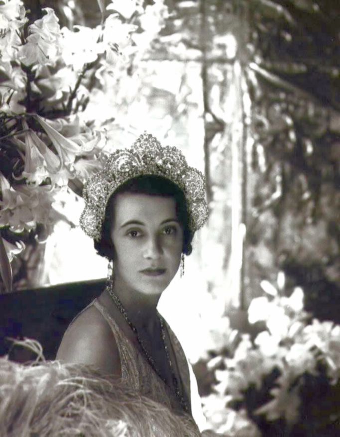 Год спустя фотограф Сесил Битон запечатлел молодую герцогиню во всей её аристократической роскоши для официального портрета. На фоне белых лилий она красовалась в знаменитой вестминстерской тиаре «гало». Изготовленная по заказу 2-го герцога Вестминстерского и состоящая из семи панелей мастерами-ювелирами Lacloche Frères, эта бесценная драгоценность сверкает 1421 бриллиантом, включая два бриллианта грушевидной огранки, изначально подаренных королеве Шарлотте навабом Аркота.