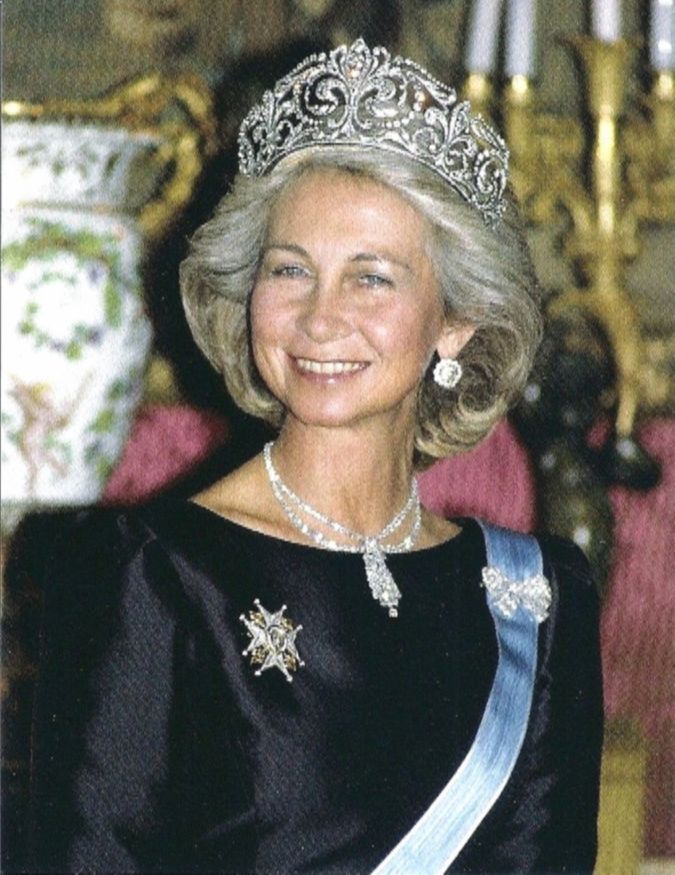 На голове Летиции сияла Прусская тиара с бриллиантами, которая также украшала голову ее свекрови в день свадьбы с королем Хуаном Карлосом в 1962 году. К свадьбе король и королева подарили Летиции серьги с крупными бриллиантами…