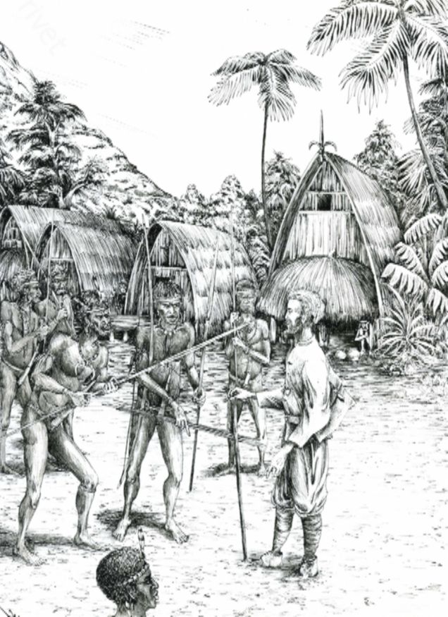 «Тамо-русс» на местном языке означало буквально «человек из России». Николай лежал в углу хижины на бамбуковых носилках, сваленный лихорадкой. Аборигены громко спорили. Взгляд Николая остановился на лицах, ждущих ответа. Поднявшись, он снял со стены копье и дал в руки Саулу: «Что ж, посмотри сам!»