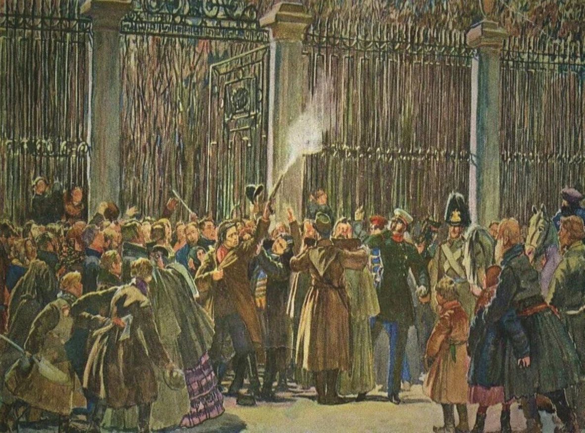 Из ворот Летнего сада вышел император. Ему подали шинель. Он стал надевать ее и в этот момент молодой человек, бесцеремонно оттолкнувший Комиссарова, полез в карман и достал оттуда пистолет.