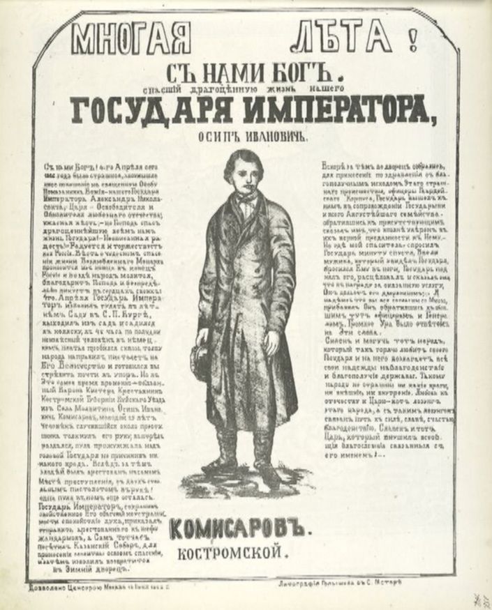 Герою, который предотвратил убийство царя, было 28 лет. Крестьянин по рождению и ремесленник по профессии, Комиссаров был представителем того самого простого народа, которого Каракозов собирался спасать.