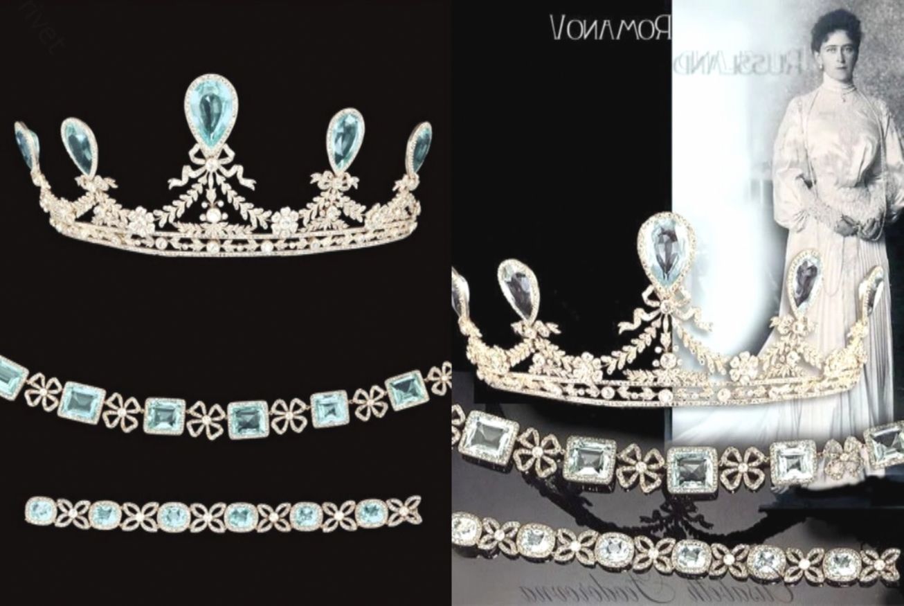 Аквамариновая парюра, состоящая из тиары, ожерелья, браслета и пары серег, оказалась у её родного брата, герцога Эрнста Людвига. Не могу точно сказать, была ли она продана ему или герцог получил эту парюру в подарок от сестры, возможно, в обмен на пожертвование на её благотворительные дела.