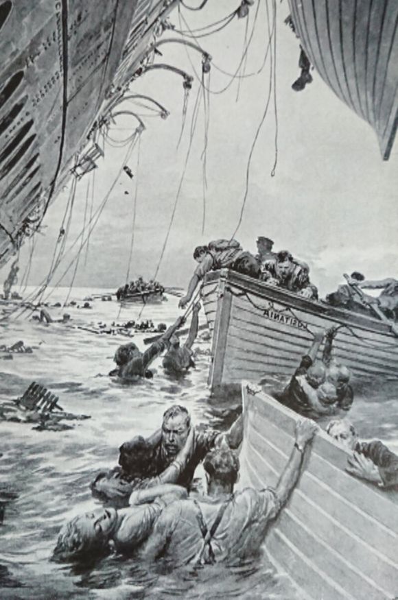 Капитан оставался на мостике до самого конца, пока его не смыло водой. Тернер держался на воде, вцепившись в соломенное кресло. Рядом с ним оказался итальянский граф, знакомый Вандербильта. Мисс Мерт подумала, что он сошел с ума: он плыл лежа на спине, улыбался и пел арии из «Аиды». Мисс Мерт втащили в шлюпку, когда она уже практически была без сил. В шлюпке распоряжалась немолодая коренастая женщина. Позже мисс Мерт узнает, что обязана своим спасением ткачихе Элизабет Дакворт.