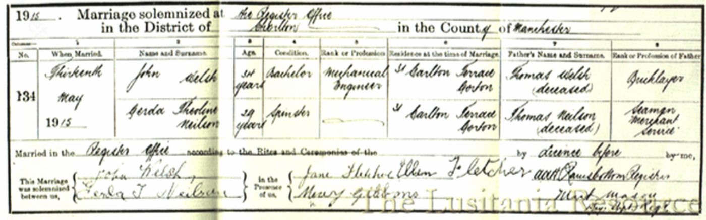 Пассажиры третьего класса — Джон Уэлш и Герда Нейлсон, которые познакомились в этом путешествии, решили пожениться сразу же по прибытии в Ливерпуль. Кстати, они чудесным образом спаслись и поженились менее чем через неделю после катастрофы.
