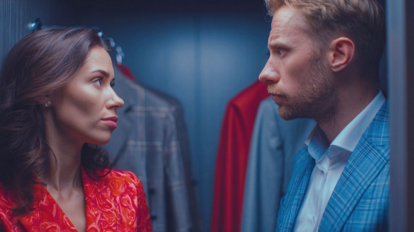 Марина стояла у зеркала в пол, прикладывая к себе какое-то платье. Увидев мужа в отражении, она резко развернулась, инстинктивно прикрывая собой стойку с блузками.