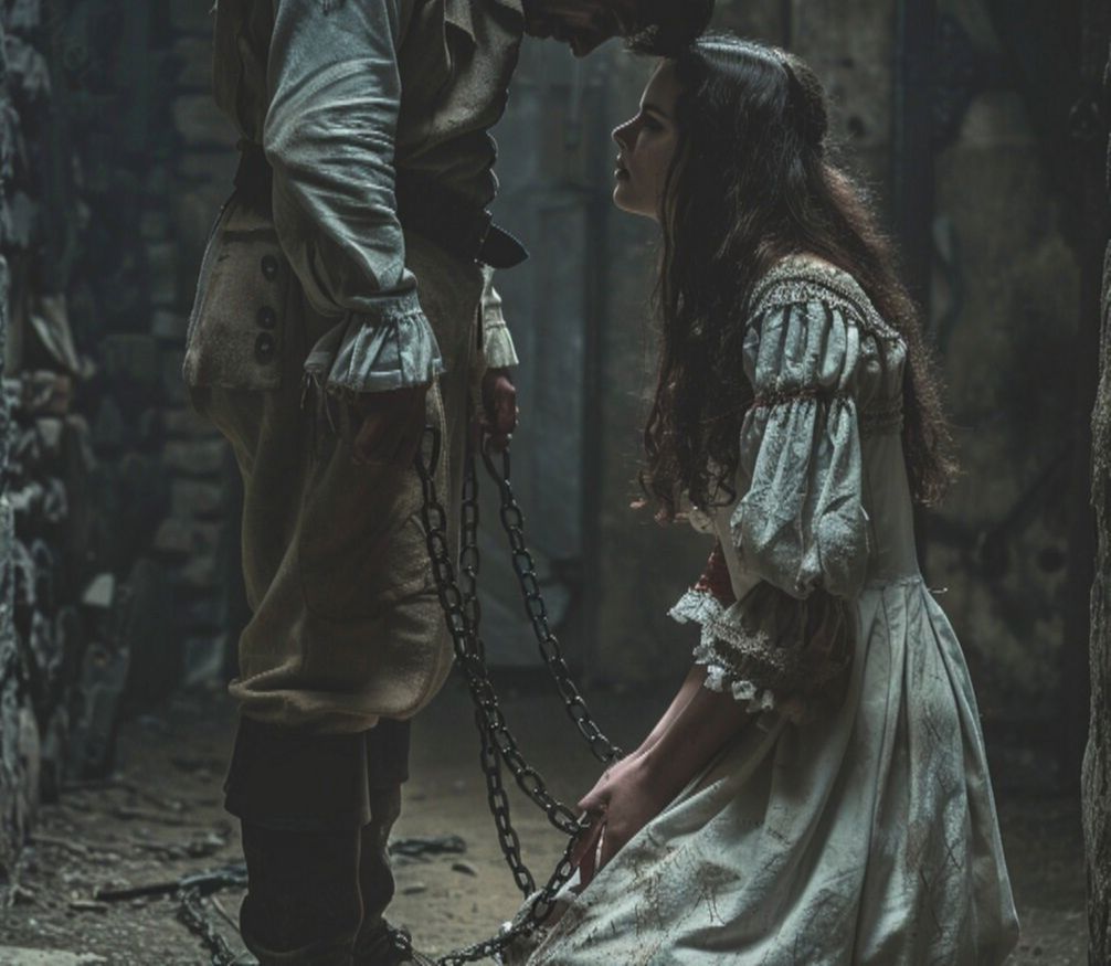 Княгиня со слезами на глазах взглянула на супруга и, опустившись на колени, прижалась к нему. Темнота в помещении была созвучна настроению Марии. Она начала целовать проржавевшие цепи на муже. Начальник рудников, стоявший за ее спиной, остолбенел от увиденного.