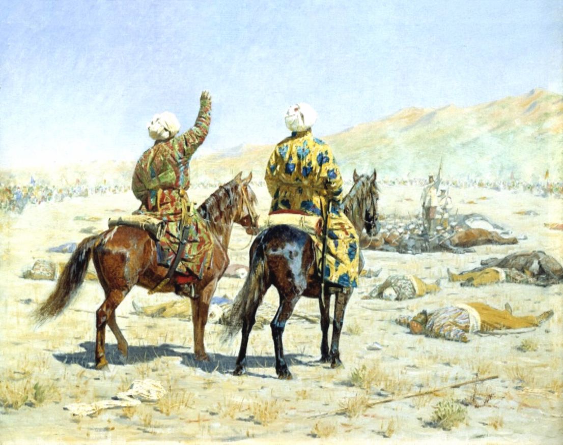 Василий разъезжал по Туркестану в сопровождении двух казаков, с папкой для рисования через плечо и револьвером в кармане, осматривая развалины уничтоженных кочевниками городов и груды черепов.