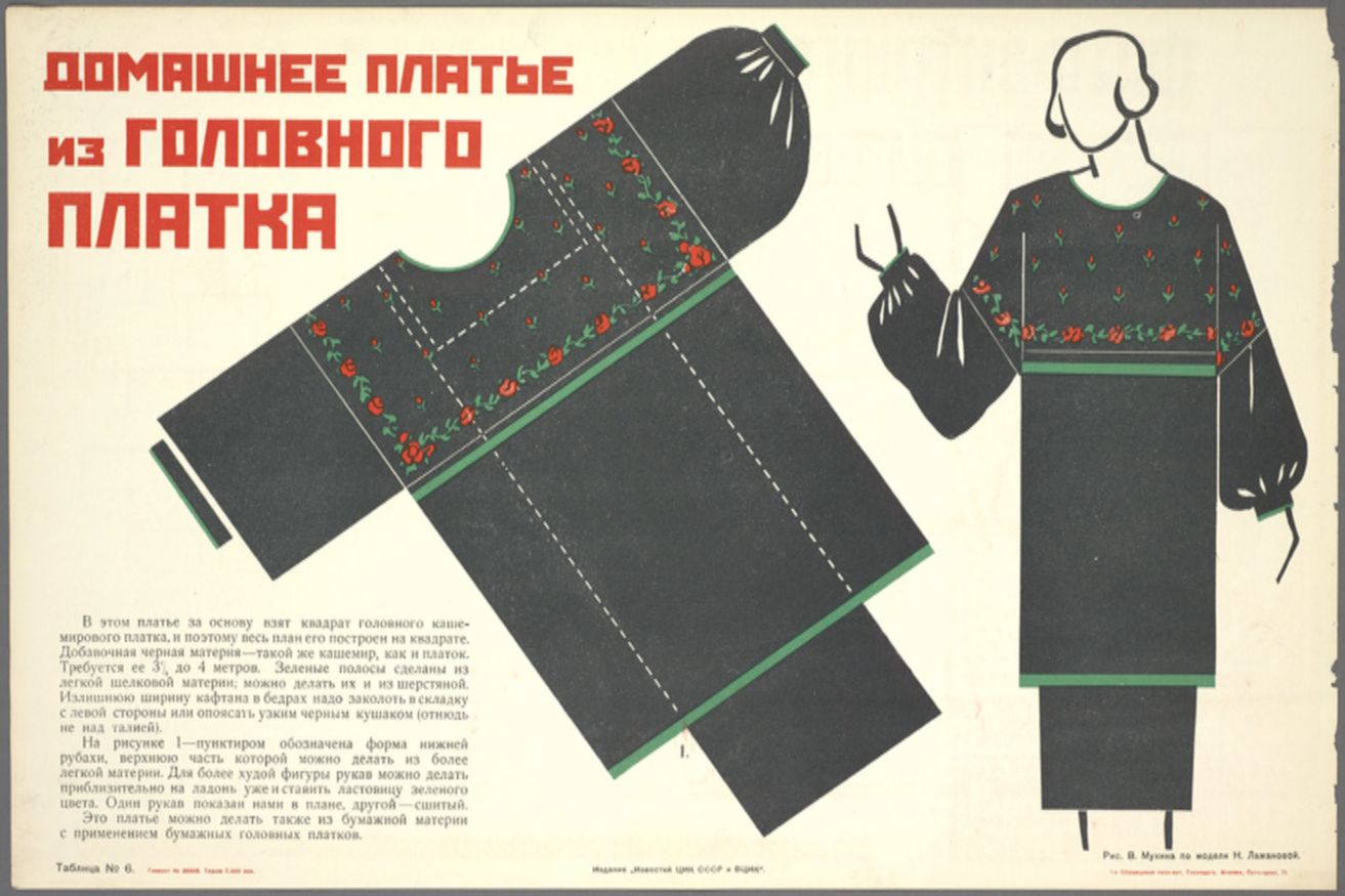 Зато Вера попробовала себя в качестве модельера. Ее подругой была Надежда Ламанова и вместе женщины с энтузиазмом принялись создавать новую моду. Платья от Мухиной были простыми, функциональными и выполнялись из дешевых материалов — бязи, бумазеи. Зато украшали их разработанные Мухиной узоры, стилизация народной вышивки.