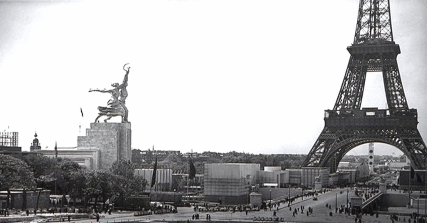 В 1934 году на Всемирной выставке в Париже была представлена гигантская скульптура «Рабочий и колхозница». Двадцать четыре с половиной метра в высоту, весом 185 тонн, скульптура, выполненная из сияющих стальных листов, была размещена на постаменте высотой 34,5 м. Казалось, что мужчина и женщина парят в воздухе, советские гиганты летели над Парижем, над всем миром. Это был грандиозный успех.